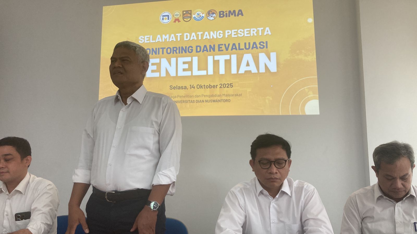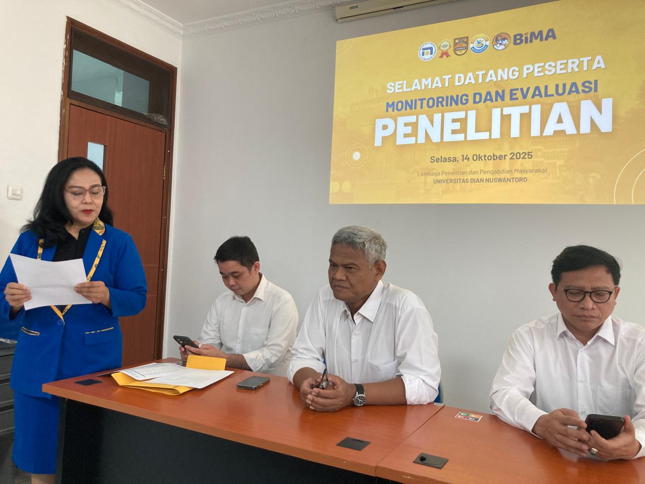 Semarang, 14 Oktober 2025 — Lembaga Penelitian dan Pengabdian kepada Masyarakat (LPPM) Universitas Dian Nuswantoro (Udinus) menyelenggarakan kegiatan Monitoring dan Evaluasi (Monev) Laporan Kemajuan Hibah BIMA Kemendiktisaintek Tahun 2025 pada Selasa, 14 Oktober 2025. Kegiatan ini bertujuan untuk menilai capaian kemajuan pelaksanaan program hibah yang diterima oleh para dosen peneliti dan pengabdi Udinus.